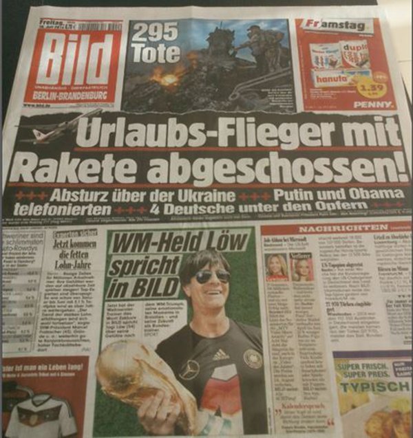 Bild: "Urlaubs-Flieger mit Rakete abgeschossen!" ("Туристический авиалайнер сбит ракетой!")