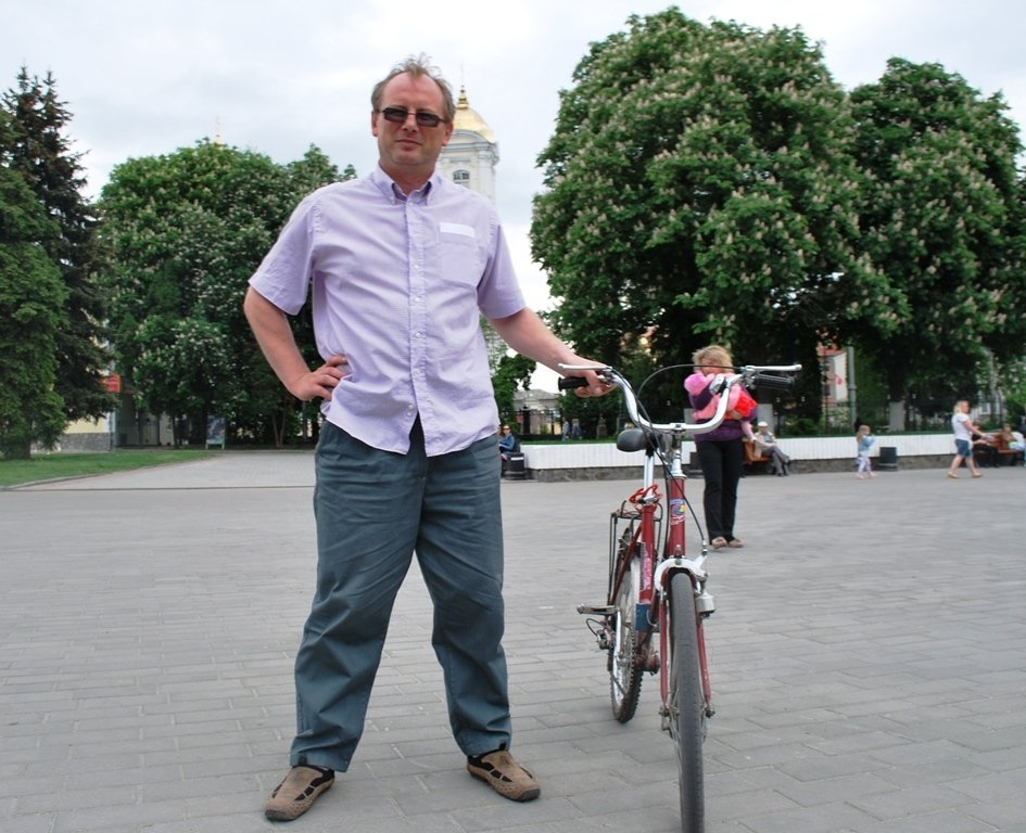 «Я сам родом з села, тому на велосипеді я їжджу з дитинства. А в Луцьку уже 5-й рік пересуваюся містом. Зимою ходжу пішки, а весною і літом - на велосипеді. По-перше, бо авто у мене нема. По-друге, я начитався Григорія Сковороди у нього філософія ходити. Мій рід славиться сильними ногами. Тому велосипед люблю. Вітер обвиває, світ бачиш, птахів. Ніхто не дихає перегаром, не топчеться по ногах, як у транспорті. По роботі велосипед добре допомагає, якщо треба кудись під’їхати. У нас у місті взагалі немає інфраструктури. Якщо говорити про велосипедні доріжки, як у Європі, то у нас їх не було ніколи. Хотілося б лучанам привити їздити на велосипедах, щоб вони пересіли з тих «кубиків», мерседесів, якими можна баржі тягнути, на велосипеди. Якщо буду в Луцьку, то візьму участь у Велодні 26-ого травня. Просто я на вихідні виїжджаю на природу, намагаюся втекти з мегаполісу».