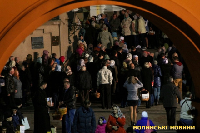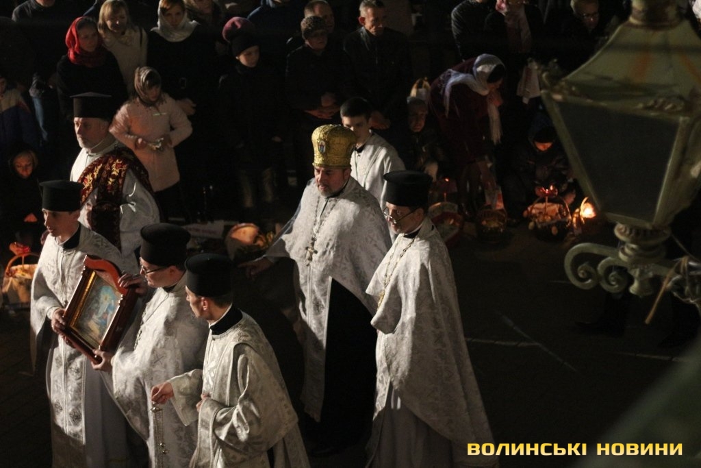 Тисячі лучан зібралися цієї ночі, аби відзначити одне з найбільших християнських свят та посвятити паски. Прихожани вишикувалися не лише навколо собору, а й на Театральному майдані.
