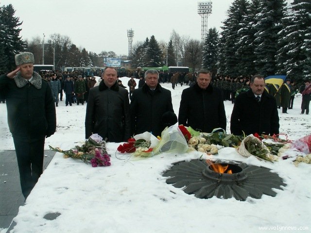 Згодом після закінчення святкового концерту ветерани взяли участь в урочистій ході до Меморіального комплексу «Вічна слава», де поклали квіти до памʼятника воїнам-інтернаціоналістам. Окрім ветеранів війн, в ній взяли участь вихованці військового та правничого ліцеїв Волині.