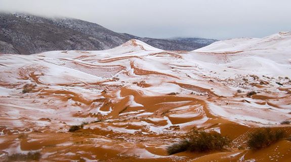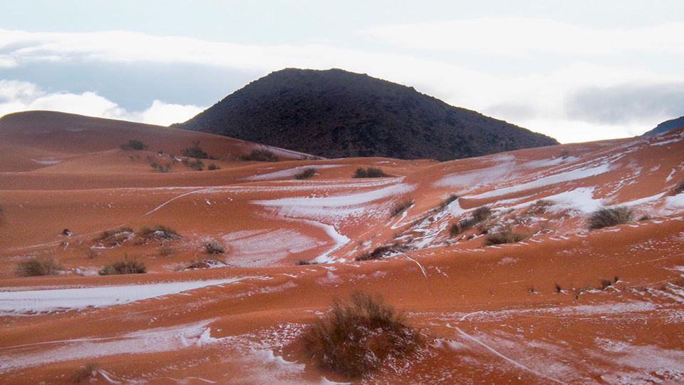 Рідкісне явище зняв на камеру фотограф Карім Бучетата у пустелі Сахара, там випав сніг вперше за 37 років.