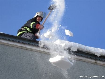 У Камені-Каширському рятувальники 1 лютого збили небезпечні бурульки з даху будинку культури в центрі міста.