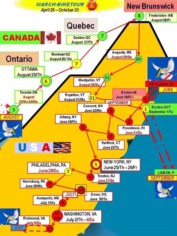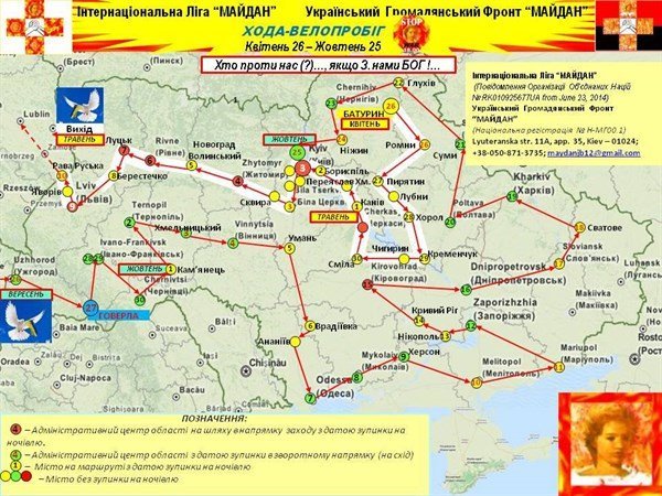 Хода-велопробіг «STOP WAR» – безпрецедентна всесвітня акція народної дипломатії, мета якої, підняти нації і народи світу щоб зупинити війну – розпочалася 26 квітня з козацької столиці Батурина, що на Чернігівщині. Пробіг пройде через 37 столиць Європи, 2 столиці Північної Америки (Вашингтон, Оттава), столиці 3 герцогств Великобританії, 29 штатів і 2 округів США та 7-ти провінцій Канади.
