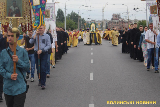 Центральними вулицями Луцька з благословення керуючого Волинською єпархією УПЦ єпископа Волинського і Луцького Нафанаїла 13 серпня пройшлася Хресна хода.