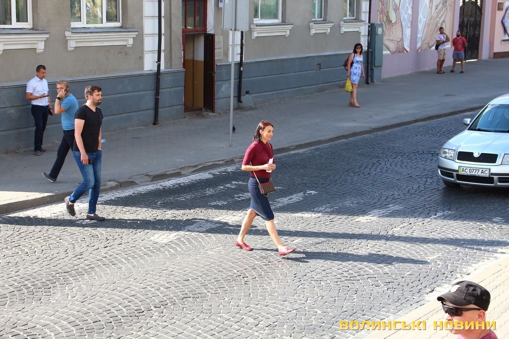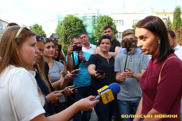 Екс-секретар Луцької міськради Юлія Вусенко прийшла на завершення робочого дня під стіни міськради доводити свою правомірність обіймати посаду, з якої її звільнили рішенням міськради.