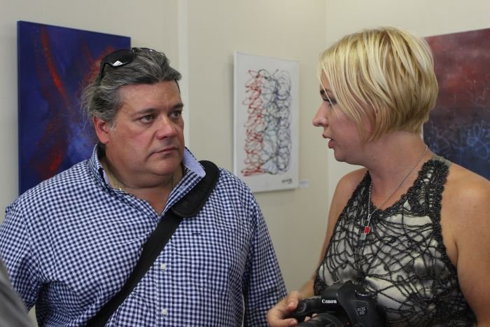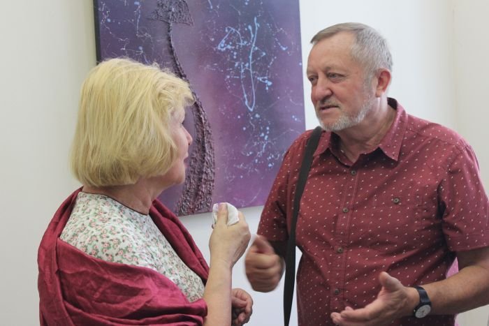 Тетяна Гнатів розповіла про творчість гостя. Зокрема, Карлос Гарсiа Лаос - супрематист, митець нової формацiї, який вiдмовився вiд бiзнесу та присвятив себе скульптурi та живопису. Протягом трьох останнiх рокiв митець провiв чимало мистецьких проектiв в Україні: виставки, майстер-класи, лекцiї у вищих навчальних закладах, школах. Його скульптури заходяться в рiзних куточках Iспанii. Органiзував декiлька потужних виставок для українських художникiв в Україні та Icпанiї.