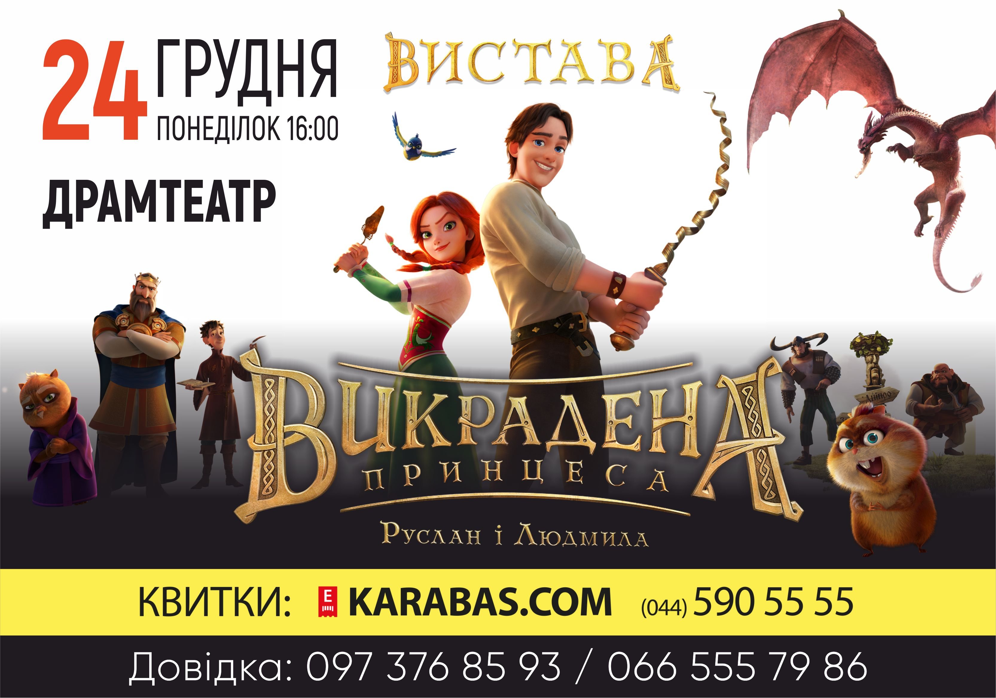 З екранів кінотеатрів - у реальний світ: цієї осені герої анімаційного фільму «Викрадена принцеса» вийдуть на сцену в Луцьку. Показ вистави за мотивами одноіменного мультфільму відбудеться 24 грудня о 16.00 в облмуздрамтеатрі.