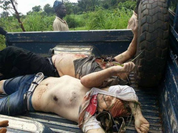 Росіян спочатку викрали, потім допитували, а потім убили. Про це пише Gazeta.ua з посиланням на французьке видання Рalmares Сentra Frique, яке порилюднило відповідне фото.