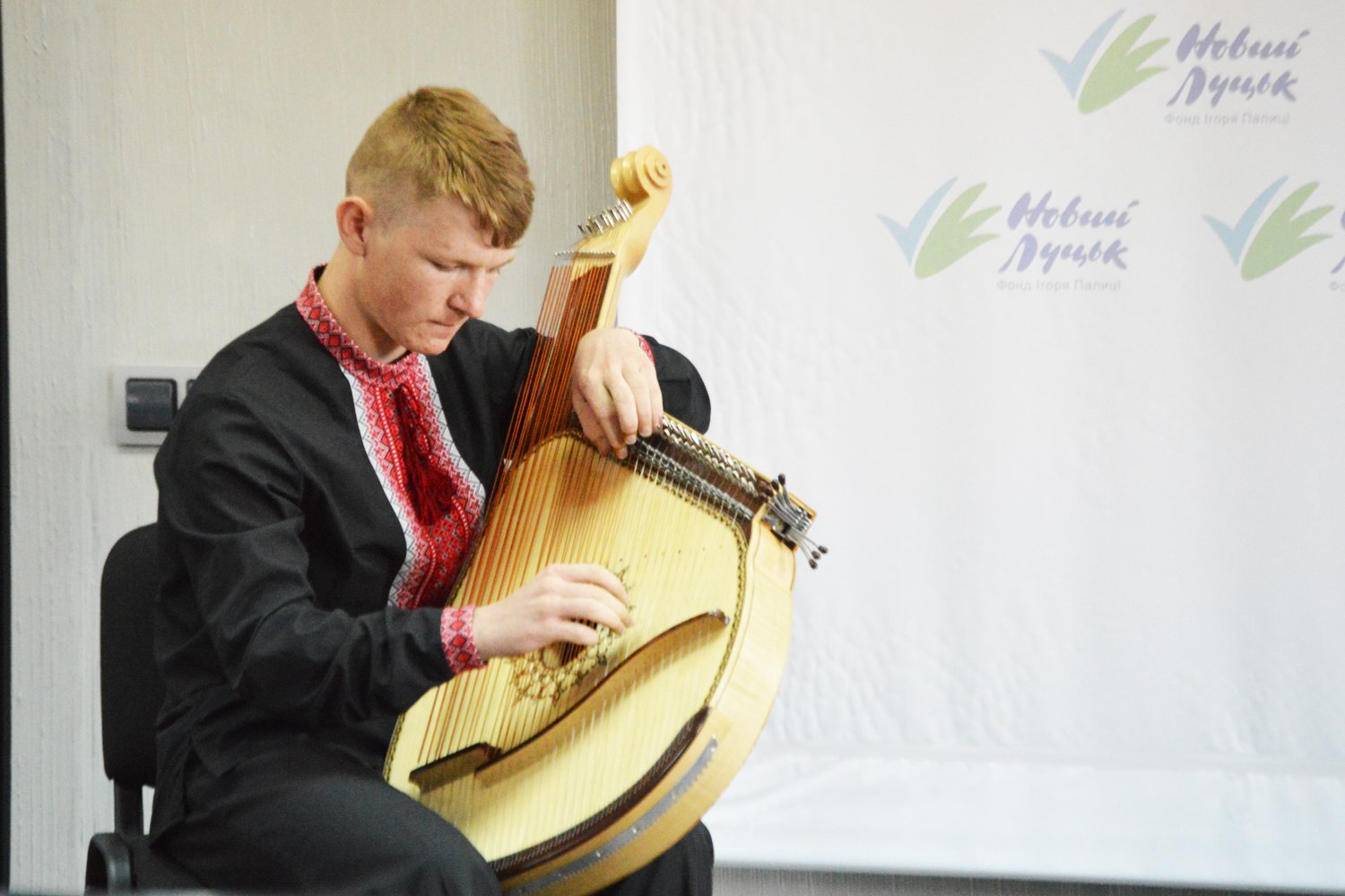 Захід розпочали з приємної музики: Діденчук Ігор, студент першого курсу ВДУКІМ імені Ігоря Стравінського зіграв для присутніх на флейті Пана. Музикою захід і закривали, учасник стипендіального конкурсу від Фонду «Новий Луцьк» Віктор Бондар зіграв для усіх присутніх на бандурі. Варто зауважити, що оскільки 21 травня – день української вишиванки, то багато з присутніх прийшли одягнені у вишиті сорочки.