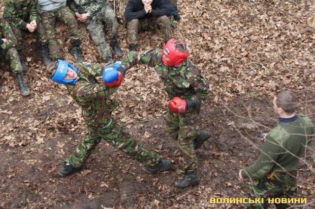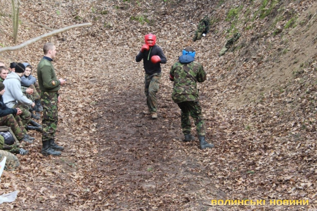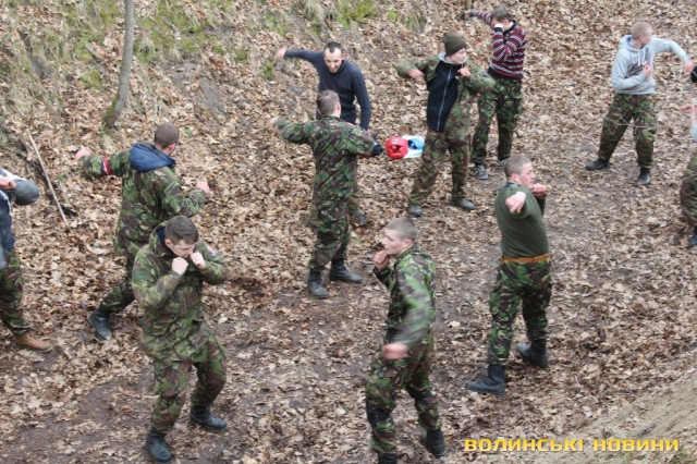 Що за патріоти які ухиляються від служби в армії, там щось навчать.Вишкіл доцільно проводити в чернігівських лісах або луганських степах і доцільно набувати навики рукопашного бою а не боксу. А це щось похоже на дитячі ігри у войнушки і показати громадськості що вони щось роблять тим самим ухилившись від виконання рішень влади
