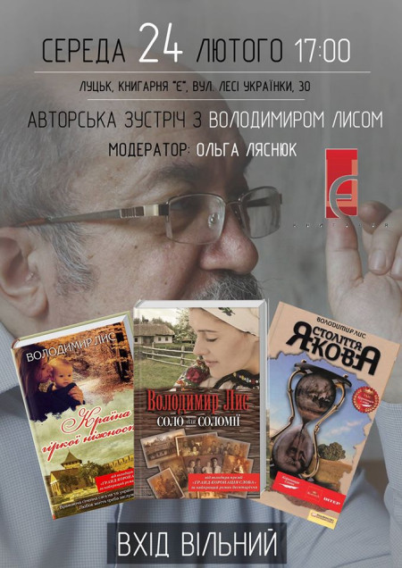 Авторська зустріч із коасиком української літератури Володимиром Лисом відбудеться у середу, 24 лютого, в Книгарні “Є”.