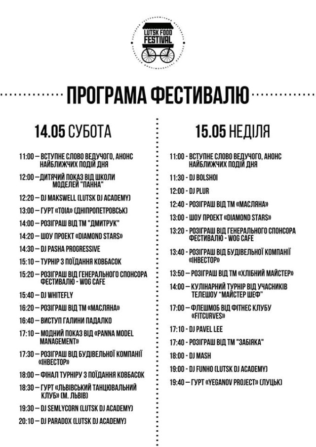 Організатори гастрономічного фестивалю «Lutsk Food Fest» опублікували програму заходу.