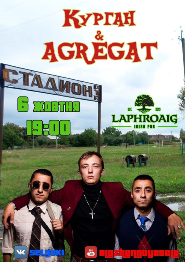 Мегапопулярний гурт Курган & Agregat розпочне свій тур у луцькому пабі Laphroaig. Концерт відбудеться 6 жовтня, початок о 19 годині, повідомляють організатори у Facebook.
