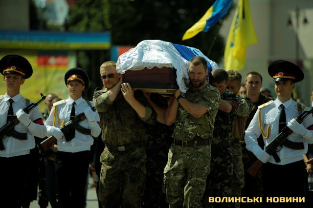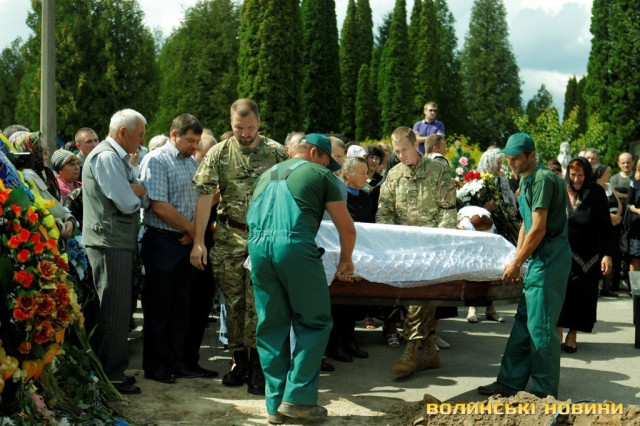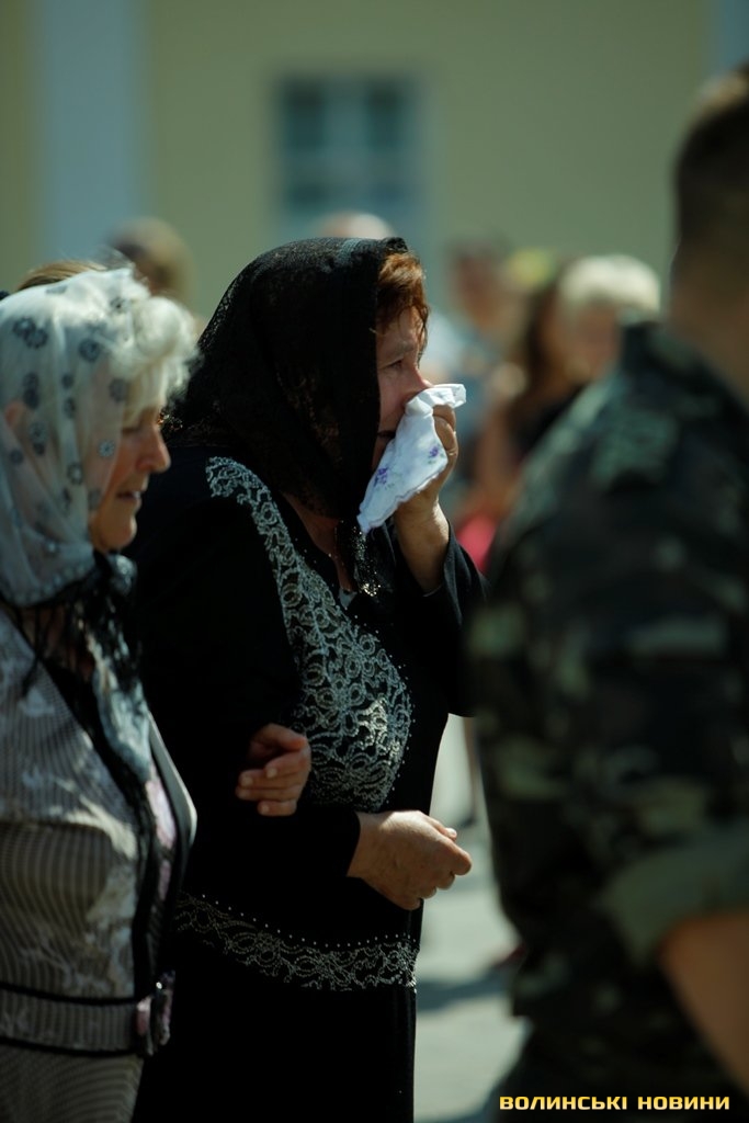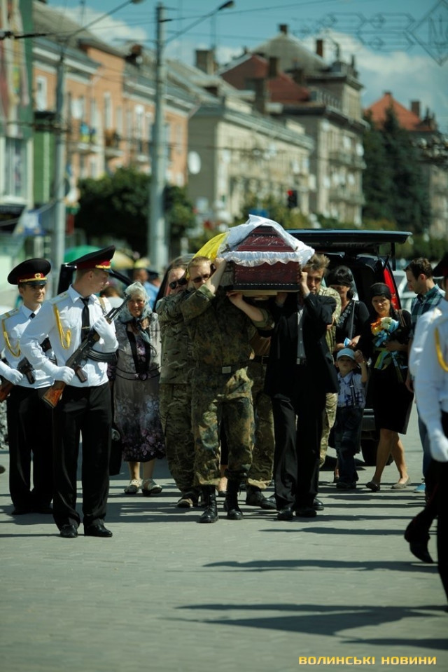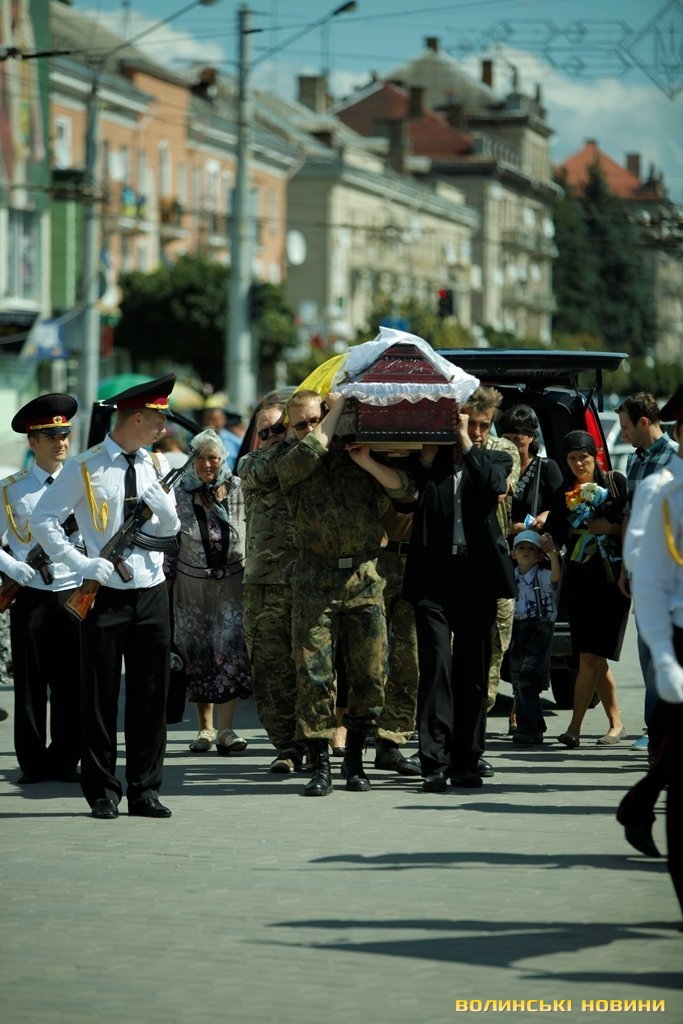 В останню путь згорьовані рідні та близькі провели загиблого під час виконання завдань АТО волинянина Ігоря Філіпчука. Попрощатися із загиблим героєм прийшло й кілька сотень лучан, представники влади та його товариші-самооборонівці.