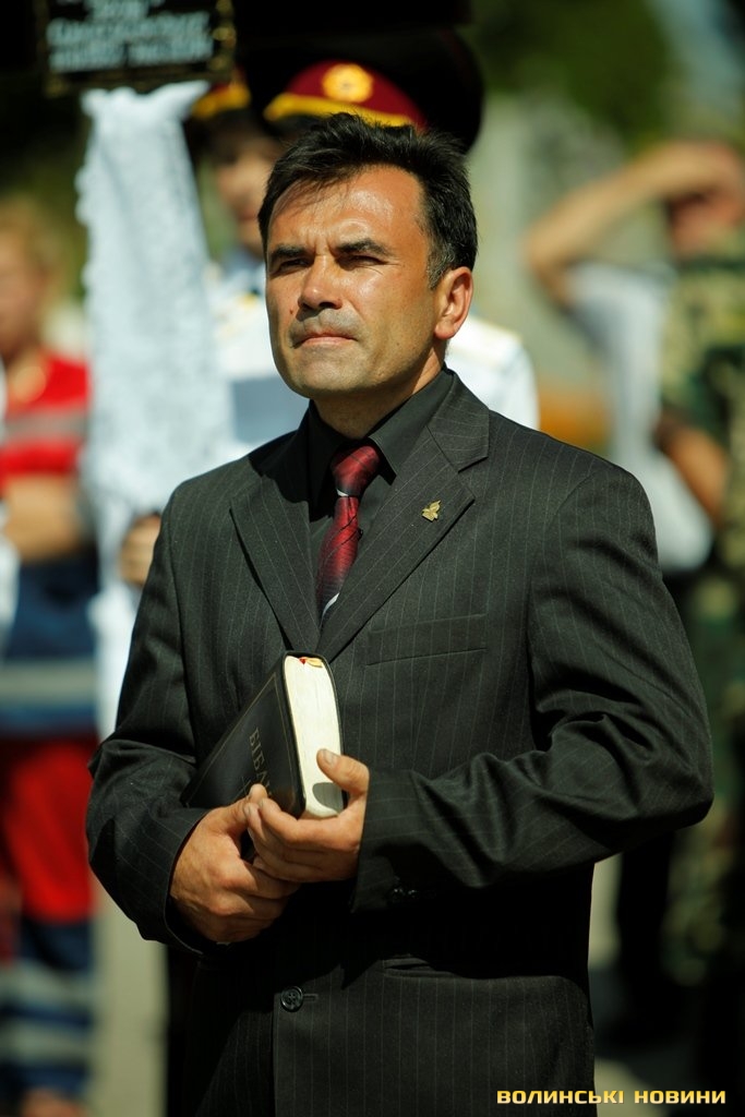 А чого його хоронить не священник, а якийсь пастор? Він що, баптистом був? І чому дві фото несуть?
