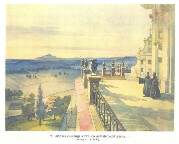 Історія була така, що в 1845 році Шевченко став членом Київської археографічної комісії. Вона займалася вивченням, в тому числі документальним, минулого. Через рік Кобзар прибув до Почаєва, де й виконав кілька акварельних малюнків Лаври.