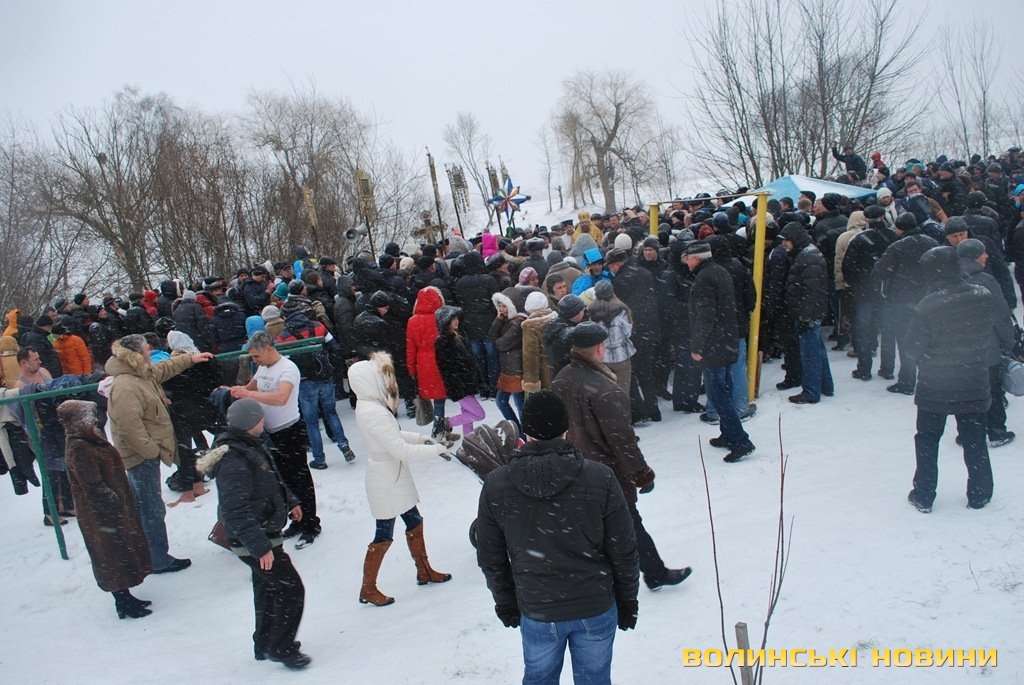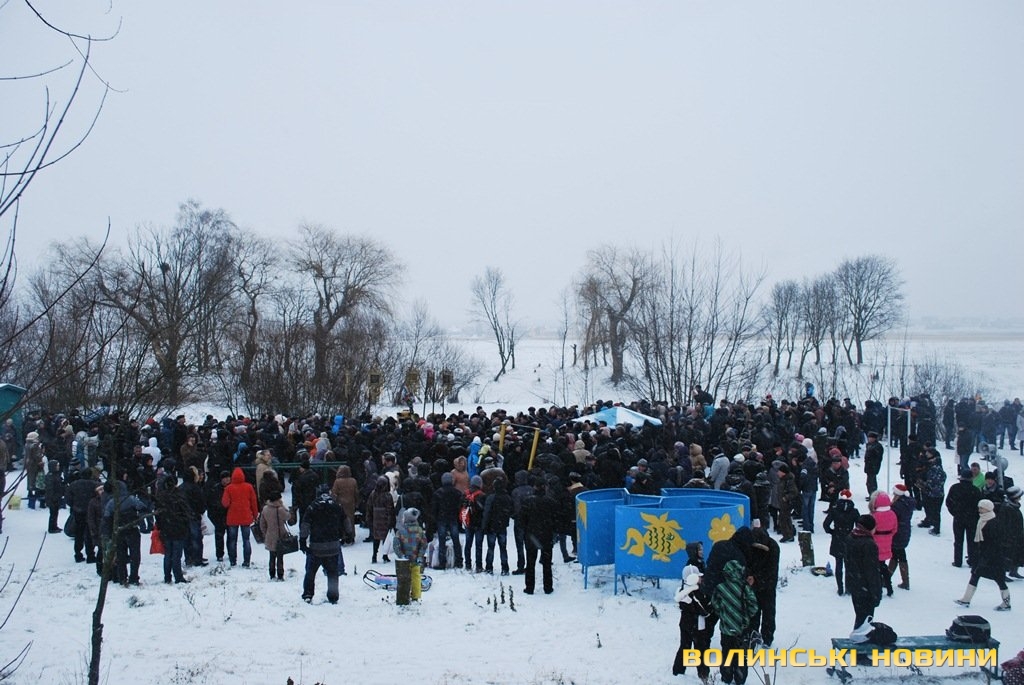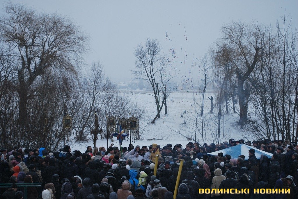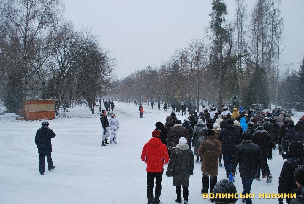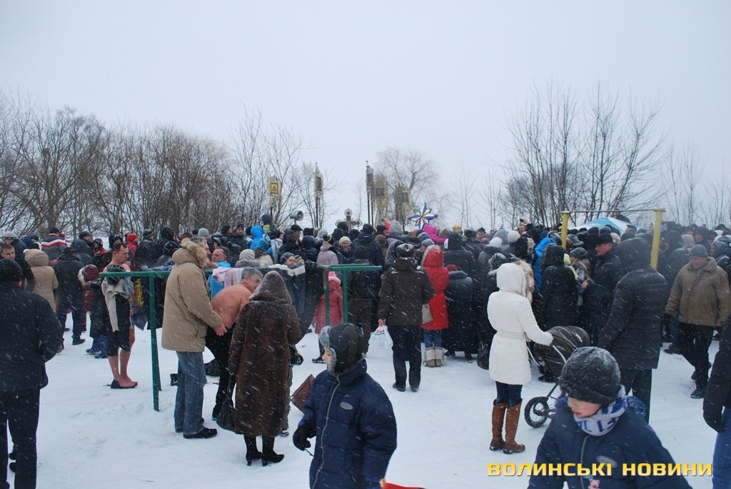 На пляжі парку священики прочитали молитву, після чого митрополит Луцький і Волинський Михаїл освятив воду Стиря.Тричі поспіль вистрілив з гармати отаман Козацького стрілецького братства Віктор Федосюк, і люди почали спускатися у холодну воду Стиря.Тим часом, берегом бігали люди з голим торсом, готуючись до занурення. Хтось грівся чаєм, а хтось – напоями більш міцними.Хоча, зі слів Валерія Макарука, який вже більше 10-ти років поспіль купається на Водохреще та близько 5-ти практикує так зване «моржування», алкоголь у цій справі – далеко не панацея.Чоловік розповідає, що у такому купанні немає нічого страшного, головне – перебороти себе і відважитись на такий вчинок: