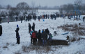 Сотні людей зібрались поблизу річки Стир для того, щоб покупатись в освяченій воді чи просто поспостерігати за дійством.