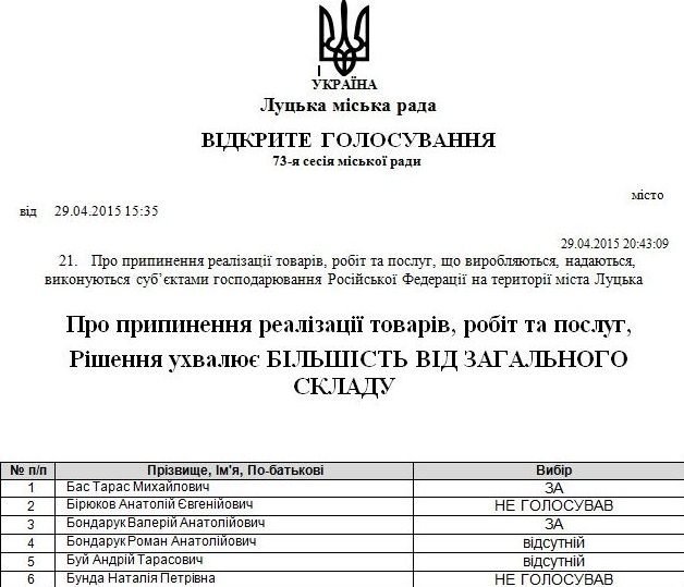 Як луцькі депутати голосували за бойкот російських товарів. Поіменно