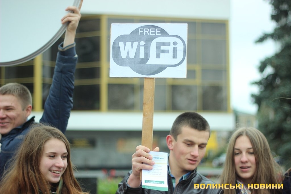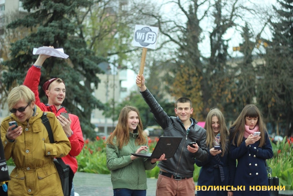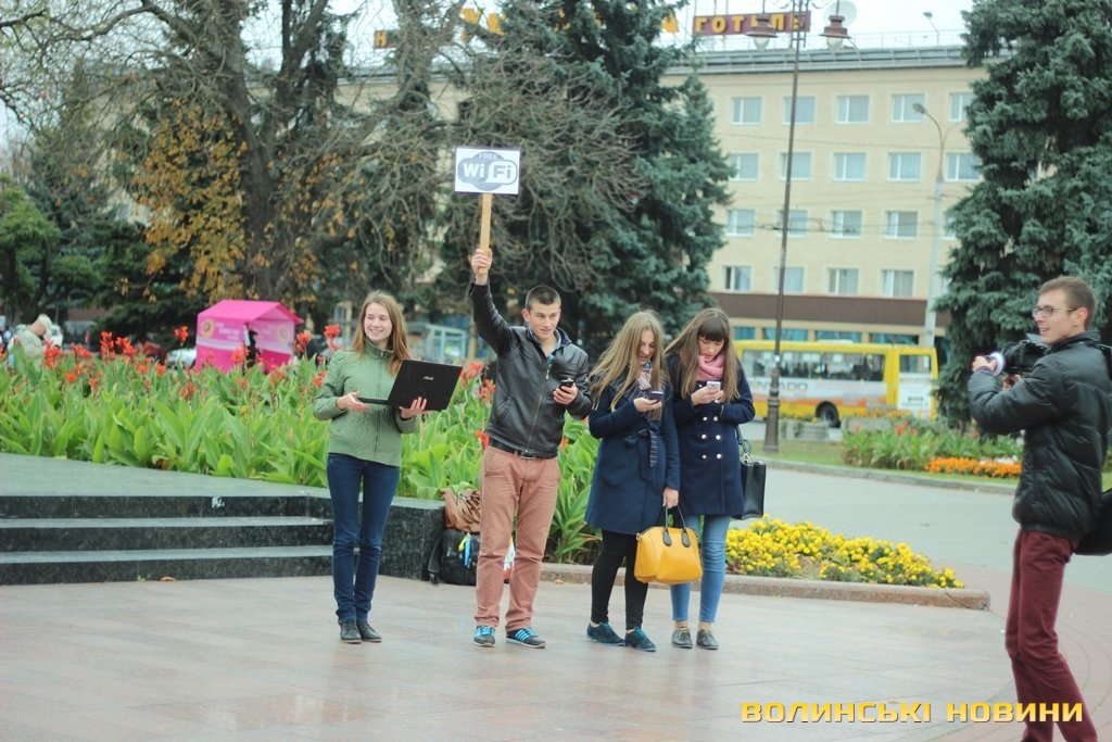 У Луцьку відбувся флеш-моб, у рамках якого луцька молодь імітувала пошук мережі Wi-Fi. В результаті безкоштовні точки доступу «таки знайшли».