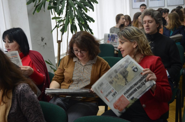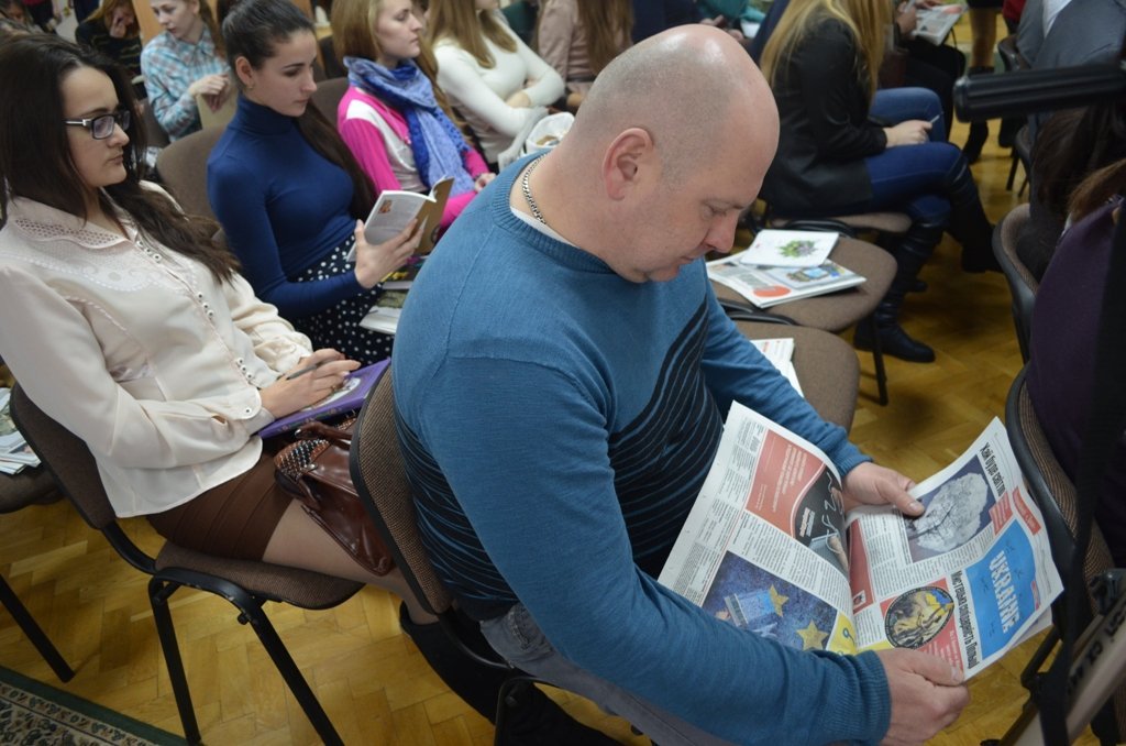 «Ви не могли не приїхати в такий непростий час, коли більше питань, аніж відповідей. І мені здається, що керувалися саме оцими бажаннями: ми - вас почути, а ви - нам підказати. І тому виставка газети «День», книги, газета і сама Лариса Олексіївна – тут, в нашому університеті», - пояснила вона.