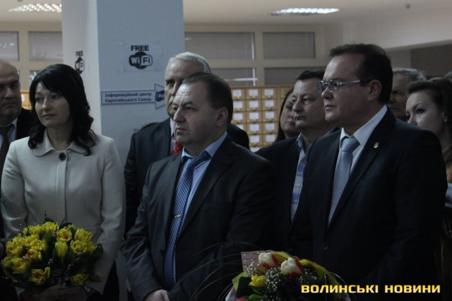 Привітали Ларису Івшину в Луцьку й представники влади. Зокрема, на зустріч прибули голова Волинської облдержадміністрації Григорій Пустовіт, перший заступник голови обласної ради Олесандр Пирожик та перший заступник Луцького міського голови Святослав Кравчук.