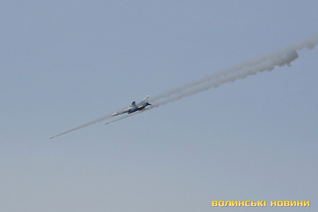 У рамках зборів відбулось і відпрацювання авіаударів з бомбардувальників по наземних цілях. Побачити як це відбувається на власні очі змогли і репортери Інформаційного агентства Волинські Новини.
