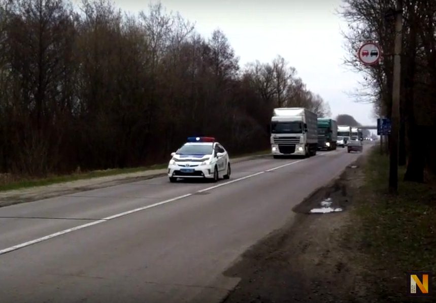 Як поліція супроводжує російські фури в Ковелі. ВІДЕО