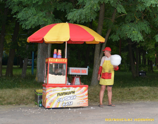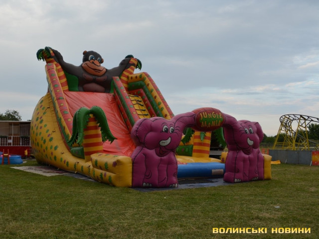 Щороку посеред липня до парку у невеликому райцентрі, на потіху дітлахам, приїжджають різноманітні атракціони. Якщо раніше на вантажівках із забавками виднілися чеські номери, то тепер – наші. До «послуг» малечі були різноманітні батути, каруселі, американські гірки.