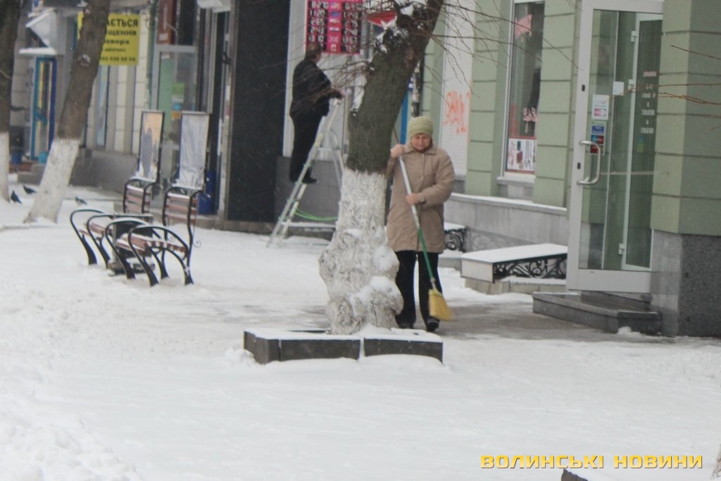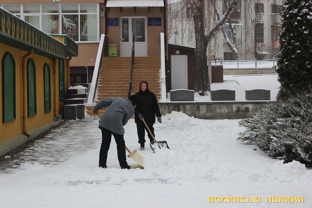 Луцьк чистять від снігу. До комунальників міста долучилися працівники приватних закладів.