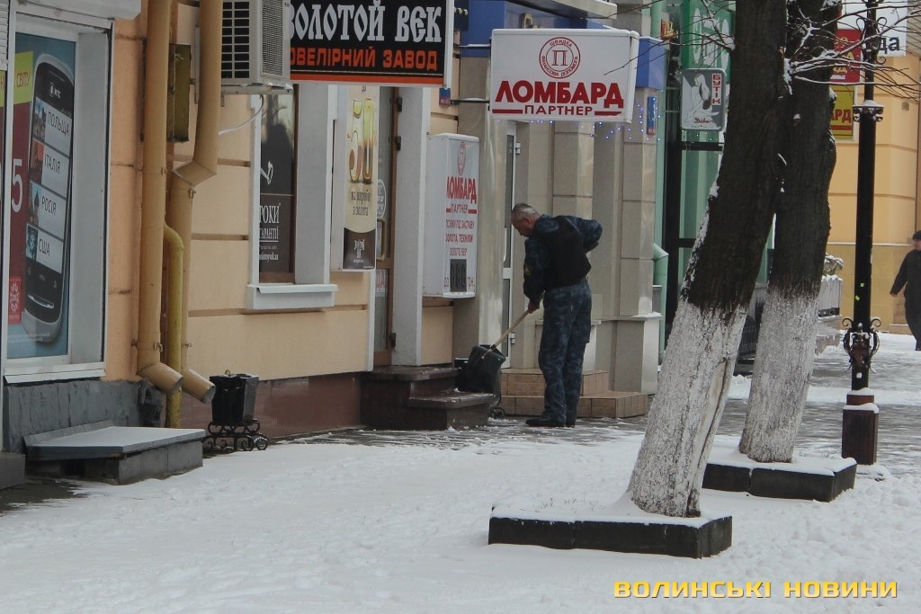 Тротуари біля магазинів, закладів харчування, підприємств активно розчищають від снігу. Адже згідно з правилами благоустрою міста, територія у 15-метровому радіусі від підприємств, закріплена за цими установами.