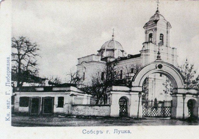 Собор над головною вулицею міста. Зображення з книги «Луцьк у старовинній листівці, гравюрі та фотографії» Віктора Літевчука