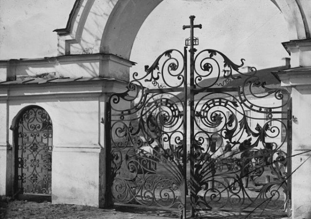 Вхідна кована брама і досі прикрашає вхід на територію собору. Фото Франца Пахляйтера 1915 року