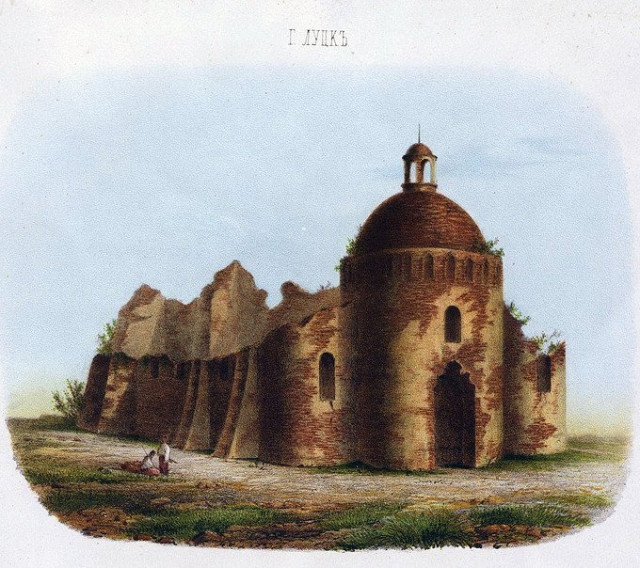 Давня церква Луцького братства в ХІХ столітті руйнувалася. Літографія Олександра Беггрова з малюнку Дмитра Струкова із книги «Памятники русской старины в западных губерниях»