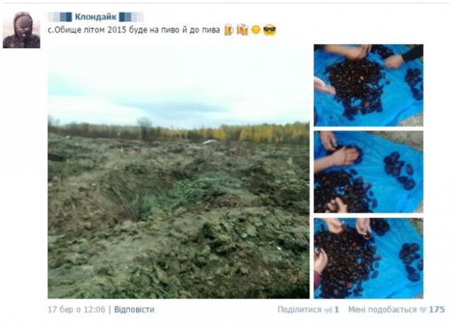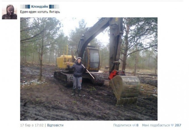 У соцмережі "Вконакте" ті, хто копають "сонячний камінь", викладають фото з місць незаконного видобутку бурштину. Група "Клондайк" - найбільша в соцмережі. Кількість підписників досягла майже 33,5 тисячі, - повідомляють Українські новини.