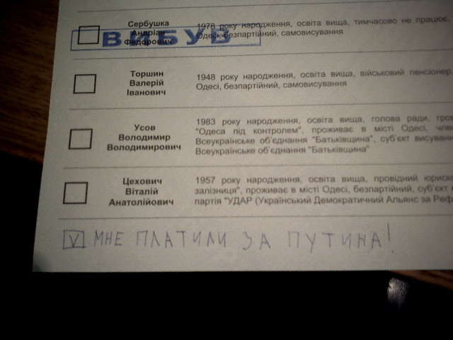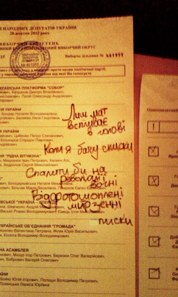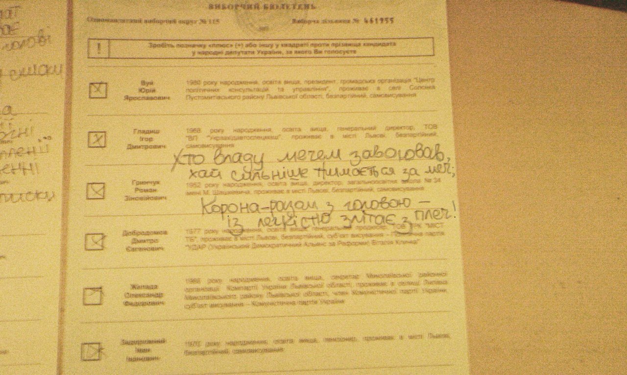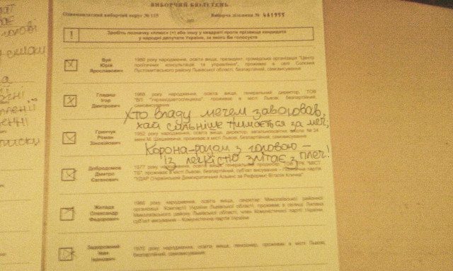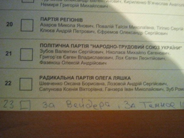 А ще був бюлетень з написом xy... вам, а не голос )))