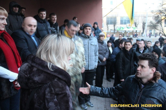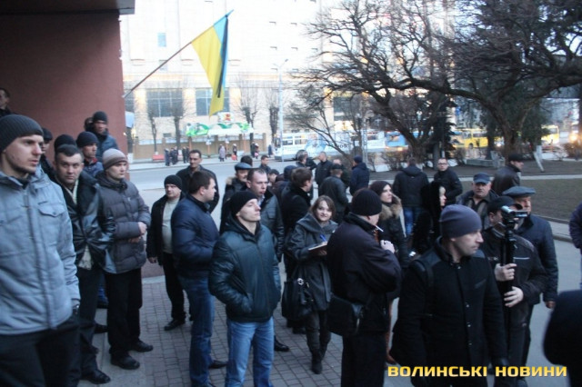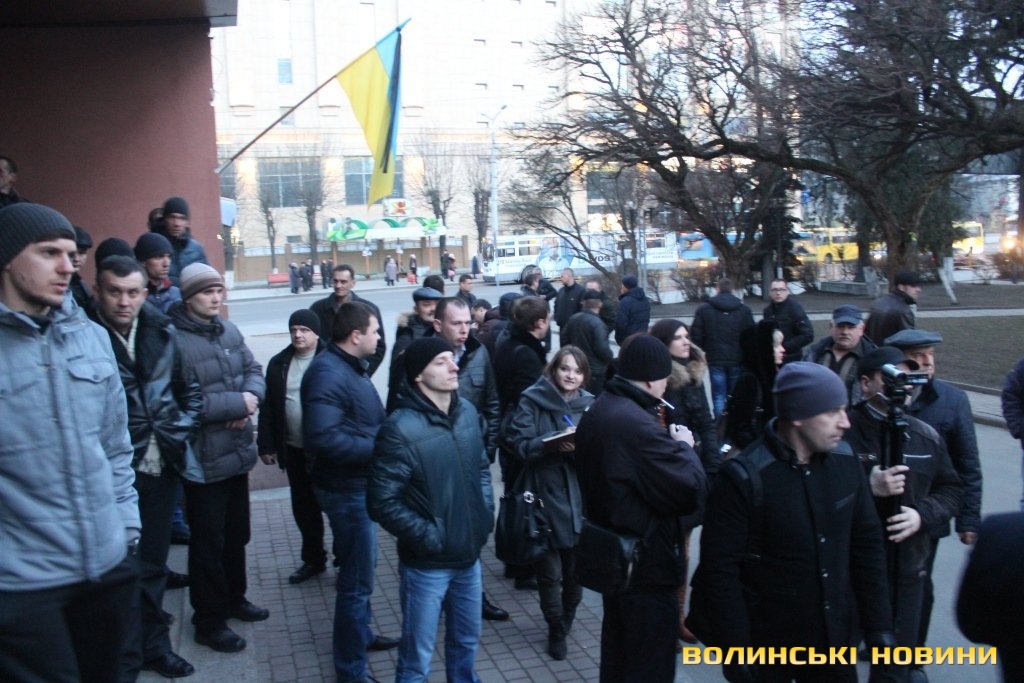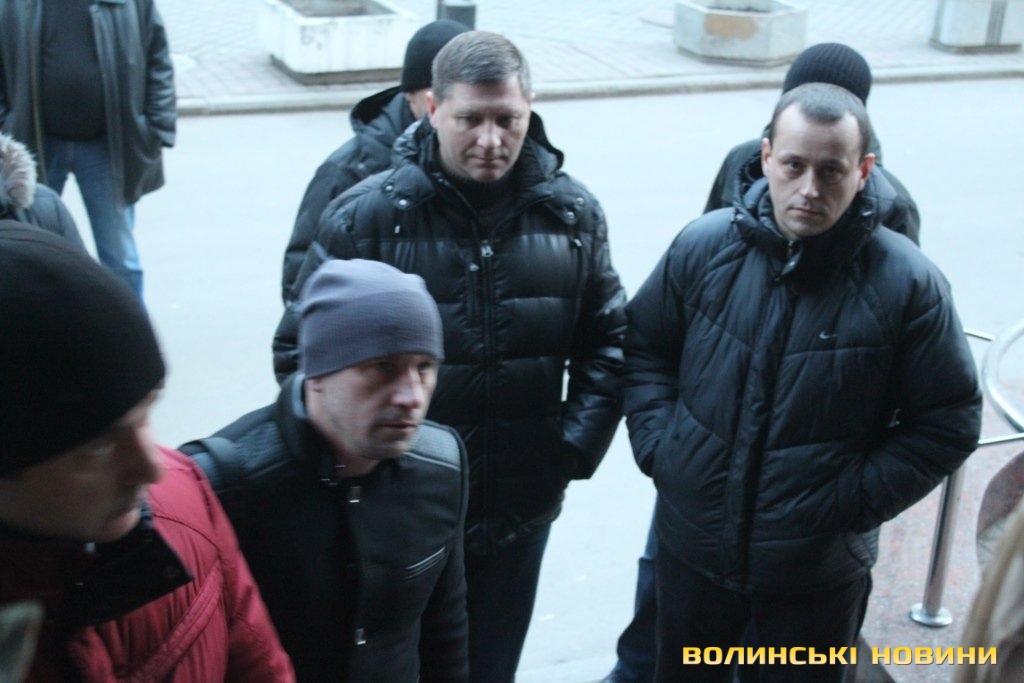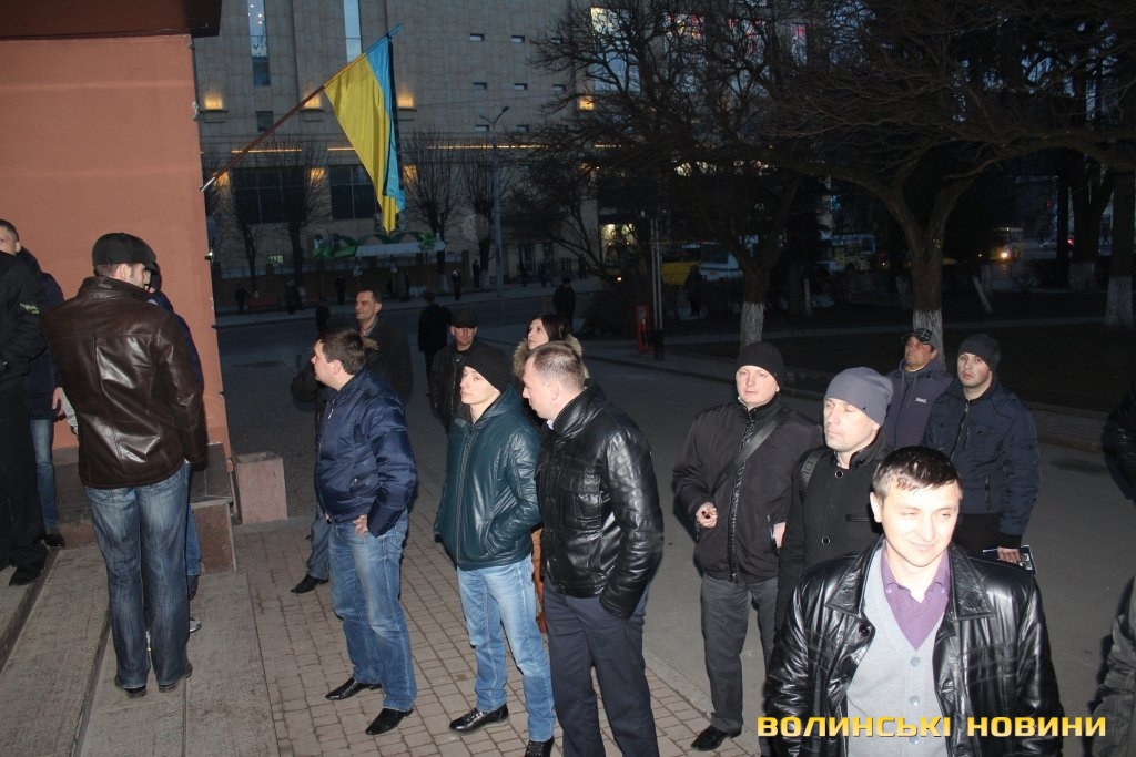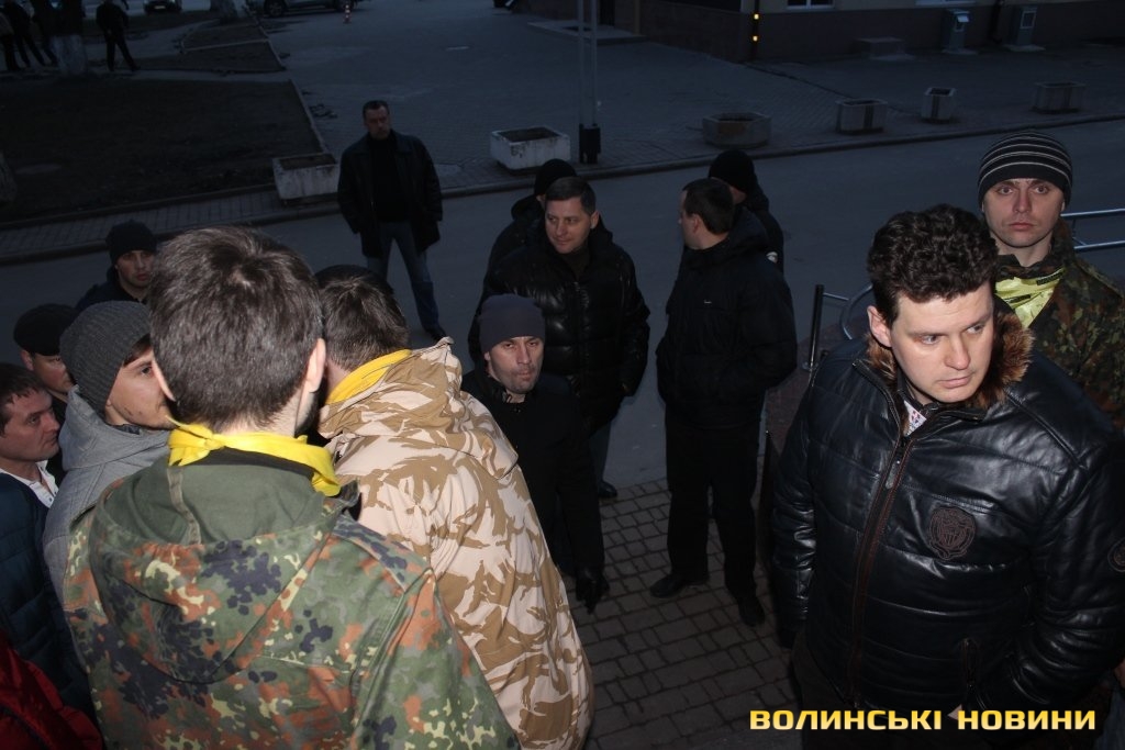 Поблизу входу в управління зібралося чимало правоохоронців у цивільному, які, з їхніх слів, прийшли, щоб послухати, про що говоритиме Ігор Гузь. Один з них звернувся до самооборонівців із проханням мати повагу до себе, нічого не громити у будинку, адже міліціонерам, мовляв, у ньому ще доведеться працювати не один рік. Учасники акції запевнили, що усе відбудеться мирно.