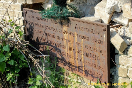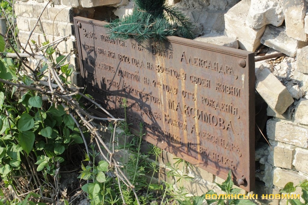 Могила, поруч із якою і «покояться» кості, належала дружині та сину архітектора Максимова, 39-річній Олександрі та 4-річному Дмитрику. Захоронення датують 1842 роком. На старій, вкритій іржею, меморіальній таблиці архітектор закликає усіх перехожих помолитися за спокій душ рідних йому людей.