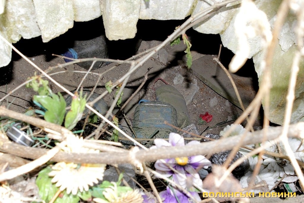Людські останки у пластиковому відеречку «спочивають» на Черчицькому кладовищі, що у Луцьку. Картину, від якої «холоне кров у жилах», можна спостерігати біля старовинного поховання, датованого 1842 роком, який у народі чомусь називають «склепом відьми».