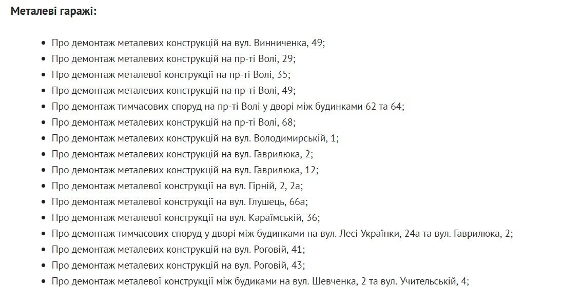 Які незаконні споруди знесуть у Луцьку. АДРЕСИ