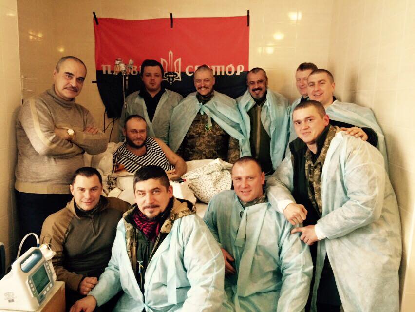 На фото: пораненого лідера ДУК «Правий сектор» Дмитра Яроша прийшли підтримати в лікарню командири практично всіх добровольчих батальйонів: