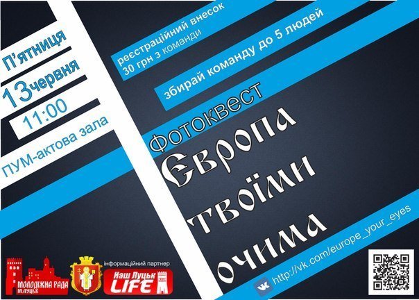 Фотоквест "Європа твоїми очима" відбудеться у Луцьку завтра об 11 годині. Про це інформують організатори заходу на сторінці в соціальній мережі.