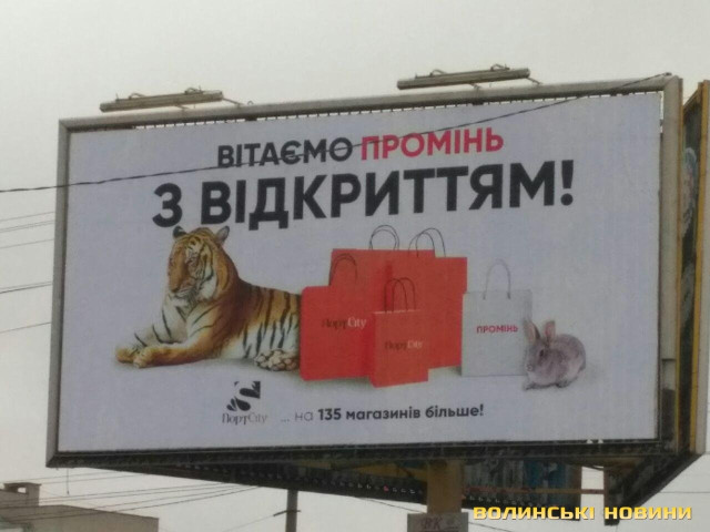 Нагадаємо, у Луцьку з`явилися рекламні щити, на яких ТРЦ вітає РЦ «Промінь» з відкриттям. Зробив «ПортCity» це у дуже оригінальний спосіб - розмістивши по місту білборди з промовистим змістом.
