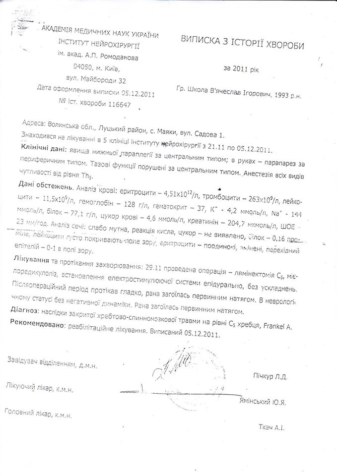 «Лікувалися у Волинській обласній лікарні. Була проведена операція. Проходив реабілітацію у Львові. Другу операцію провели у Києві в інституті академіка Ромоданова, та, на жаль, покращення немає. Знову потрібне лікування», - пише мама хворого.