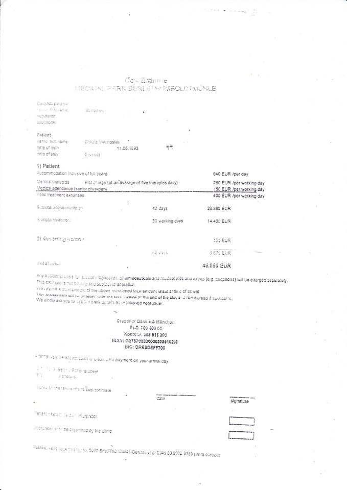 Зі слів жінки, зараз за лікування В’ячеслава готова взятися клініка в Берліні, яка оцінила вартість лікування у 41,700 тисячі євро.