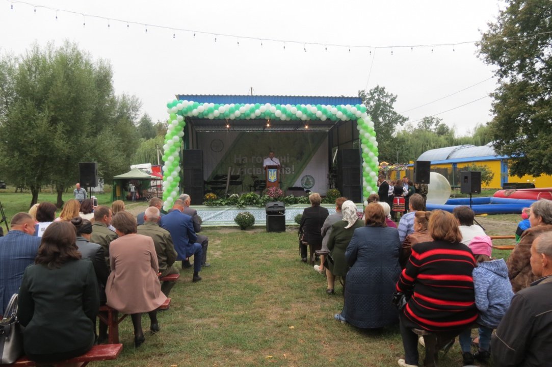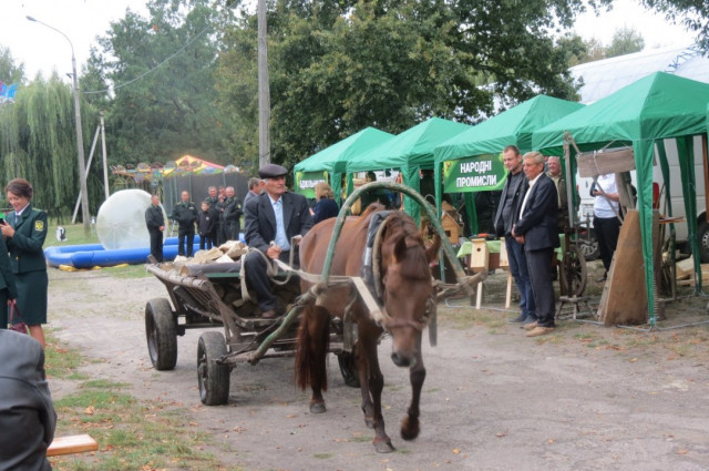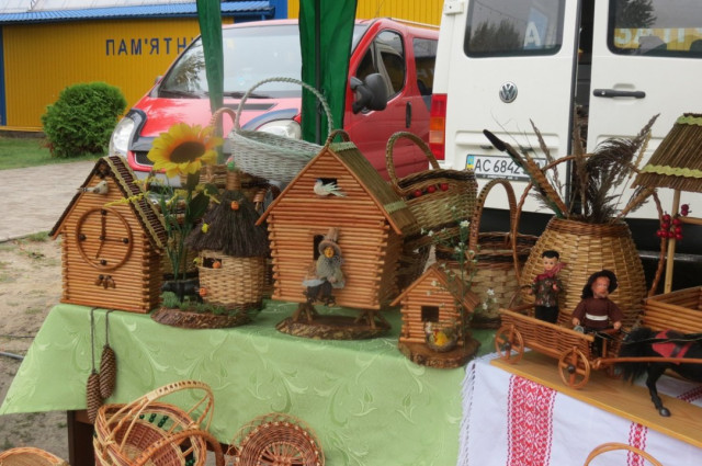 Вже на вході до місцевого парку розташувалась виставка народних промислів, виробів з дерева, різноманітні осінні композиції.
