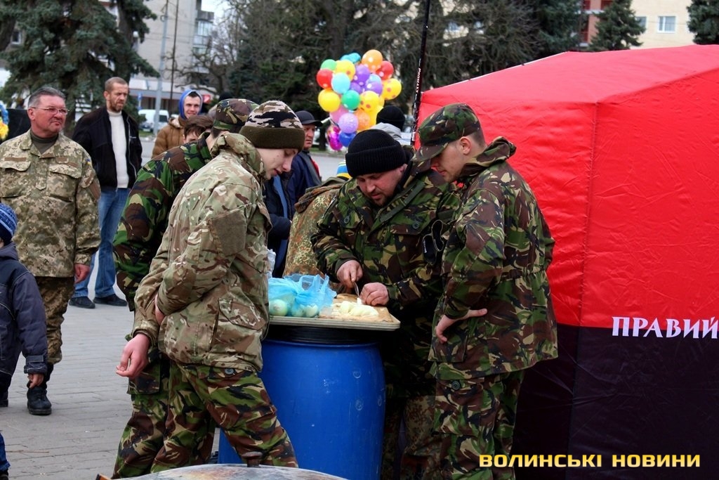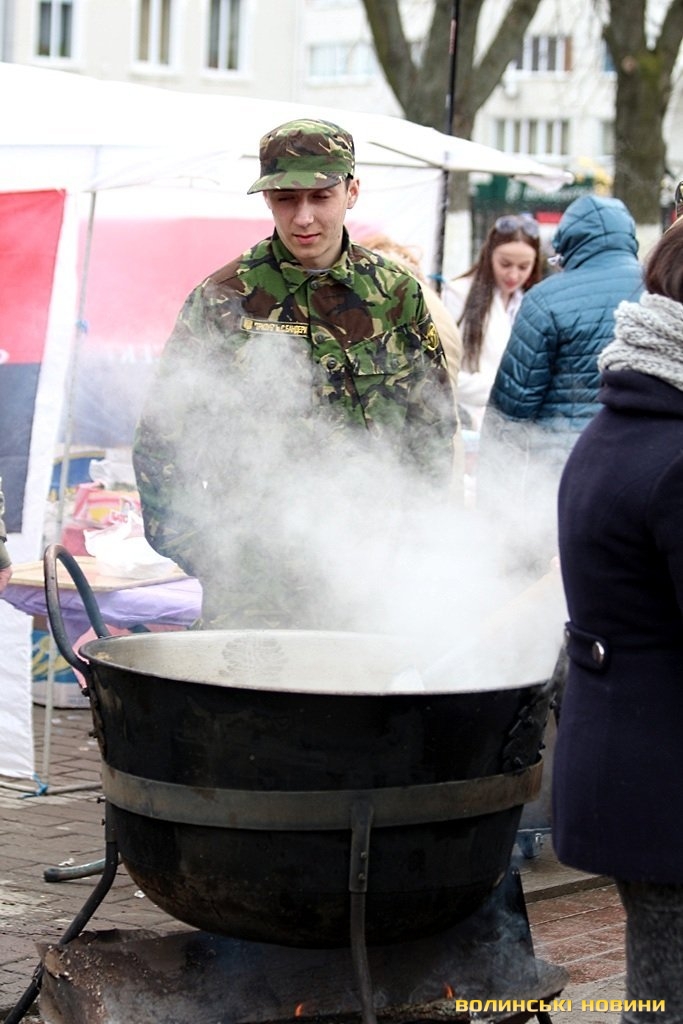 Захід тривав з 12 по 18 годину у вербну неділю, 5 квітня, на Театральному майдані Луцька. Так, аби додати сил та настрою мешканцям та гостям обласного центру у Вербну неділю активісти із Волинського осередку Правого сектору пригощали перехожих смачним пловом, кулішем та рибною юшкою, приготованими на польовій кухні.Натомість, задоволені краяни охоче кидали у скриню гроші, аби тим самим довести власну шану та повагу до тих, хто добровільно захищає суверенітет країни на передовій.