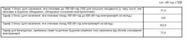 Тож відсьогодні, 1 вересня, українці платитимуть за електроенергію 71,4 копійки за кВт/год при споживанні до 100 кВт у місяць. (зростання на 25%), 129 копійок – при споживанні від 100 до 600 кВт/год (зростання на 30%) і 163,8 копійки – при споживанні понад 600 кВт/год (зростання на 5%).