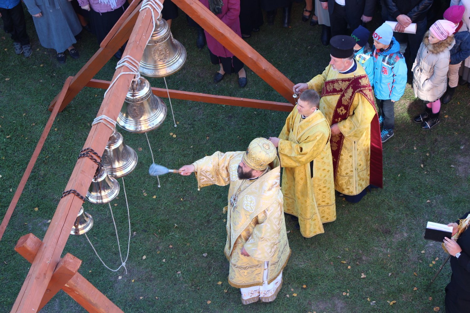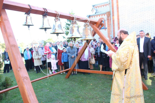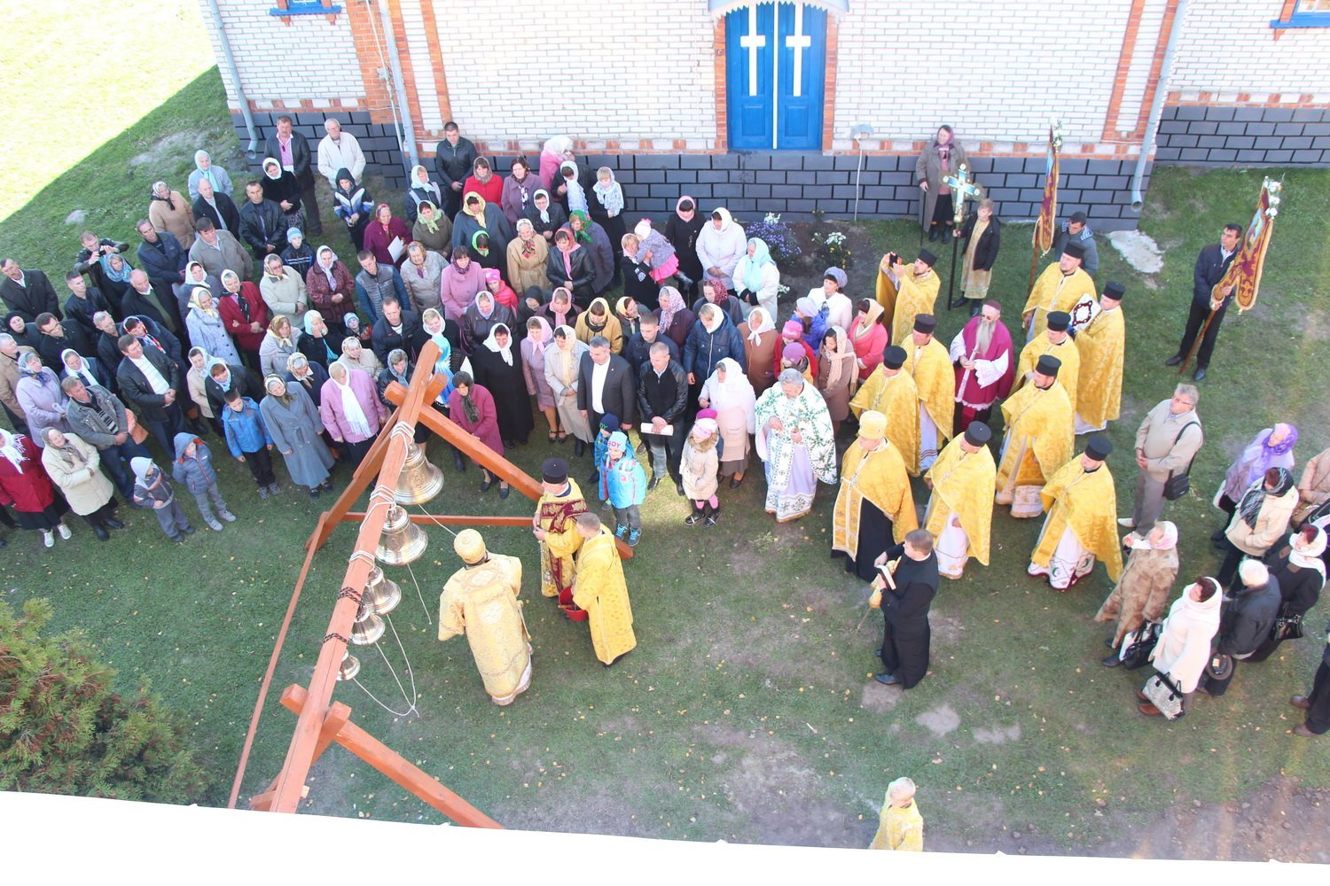 Будівництво триповерхової 22-метрової дзвіниці тривало два роки, п’ять дзвонів пожертвували місцеві фермери. Одному з них, волонтерові Ігорю Антощаку, з благословення Патріарха Київського і всієї Руси-України Філарета високопреосвященний вручив церковну нагороду – медаль «За жертовність і любов до України».