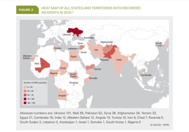 Загалом за 2016 рік внаслідок підриву на протитанкових мінах у всьому світі загинули 195 осіб, що на 29 відсотків більше, ніж торік.